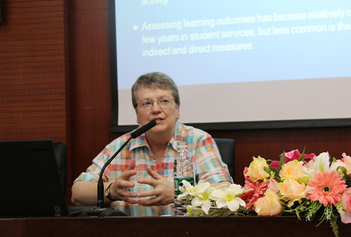 The lecture entitled Innovation in Student Leadership Programs and Measuring Their Educational Outcomes given by Professor Mary Anne Lustgraaf,Director of Student Affairs of the University of New Hampshire, was held in classroom 1213 of Long Quan Campus with the attendance of more than 80 teachers and students from Management College, which was hosted by Li Guiqin, Associate Dean of Management College.